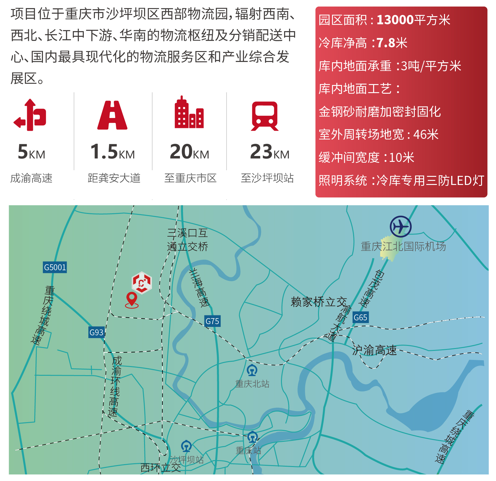 ?區(qū)位優(yōu)勢——項目位于重慶市沙坪壩區(qū)西部物流園,輻射西南、西北、長江中下游、華南的物流樞紐及分銷配送中心、國內最具現(xiàn)代化的物流服務區(qū)和產業(yè)綜合發(fā)展區(qū)。