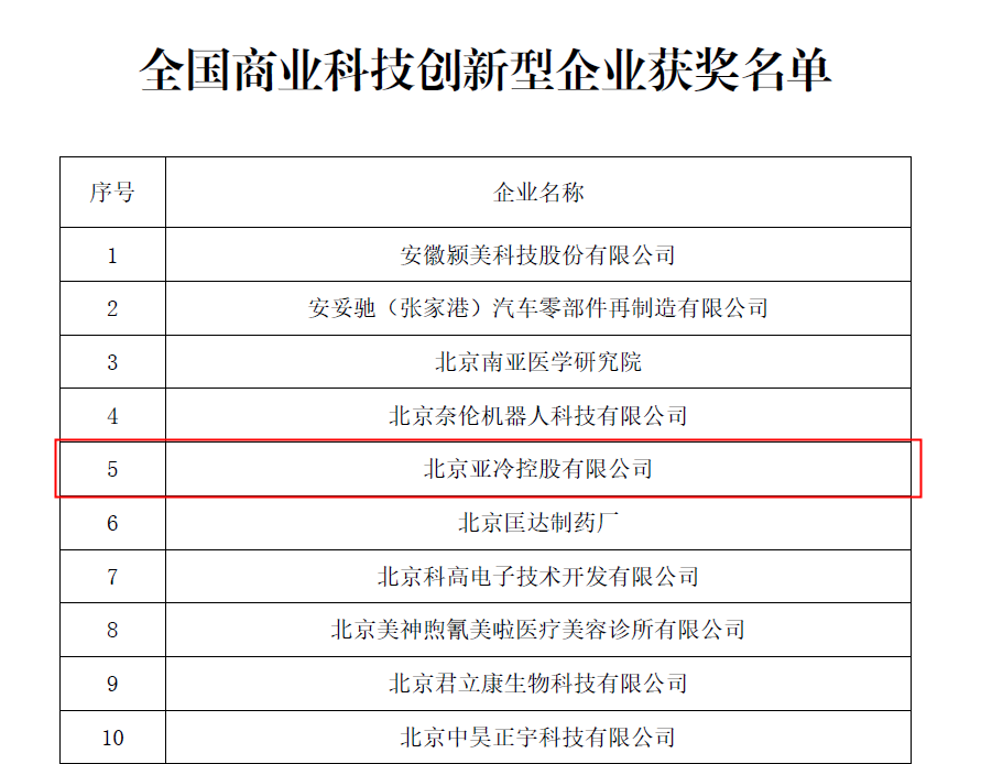 獲獎!亞冷榮獲“2021年全國商業(yè)科技創(chuàng)新型企業(yè)”