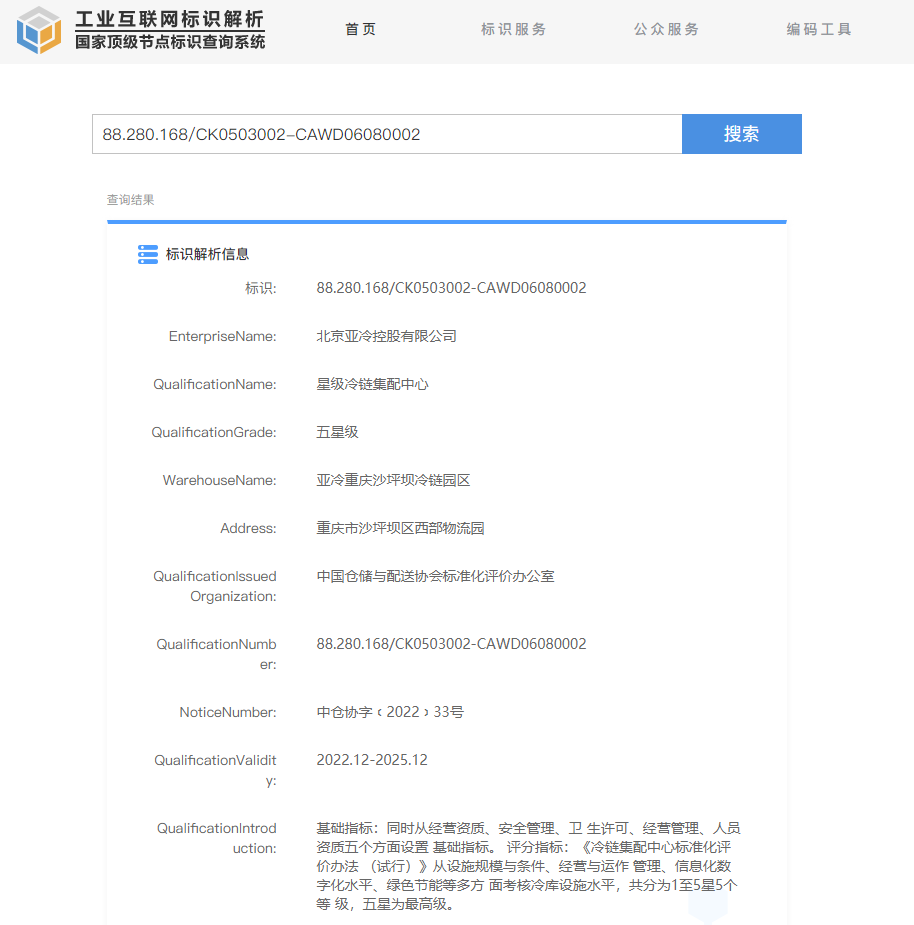 這是行業(yè)內(nèi)首次建立冷鏈集配中心標(biāo)準(zhǔn)化體系,并且開展的第一批等級資質(zhì)評標(biāo)項目,亞冷重慶沙坪壩冷鏈園區(qū)一舉拿到最高標(biāo)準(zhǔn)“五星級冷鏈集配中心”資質(zhì),這代表著該園區(qū)在設(shè)施規(guī)模與條件、經(jīng)營與運作管理、信息化數(shù)字化水平、綠色節(jié)能等多方面均達到國內(nèi)頂尖水平。這得益于亞冷是同行業(yè)中體系標(biāo)準(zhǔn)建設(shè)起步早、標(biāo)準(zhǔn)較高、執(zhí)行較好的企業(yè)。